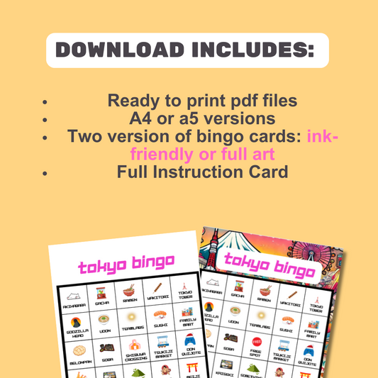 Tokyo Bingo Game – Japan Scavenger Hunt Bingo with 30+ variations