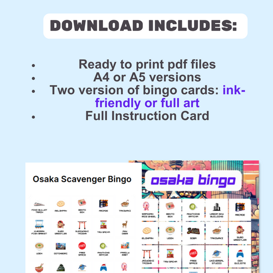 Osaka Scavenger Hunt Bingo Game – Fun Travel Activity for Kids & Adults For Japan