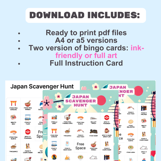 Japan Scavenger Hunt Bingo Game – Fun Travel Activity for Kids & Adults!