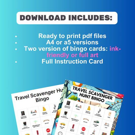 Travel Scavenger Hunt Bingo - Play with Friends or Family