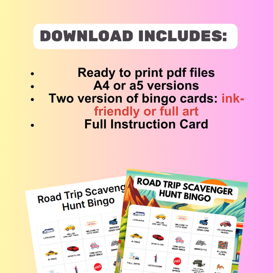 Road Trip Scavenger Hunt Bingo - Play On The Go With Friends and Family